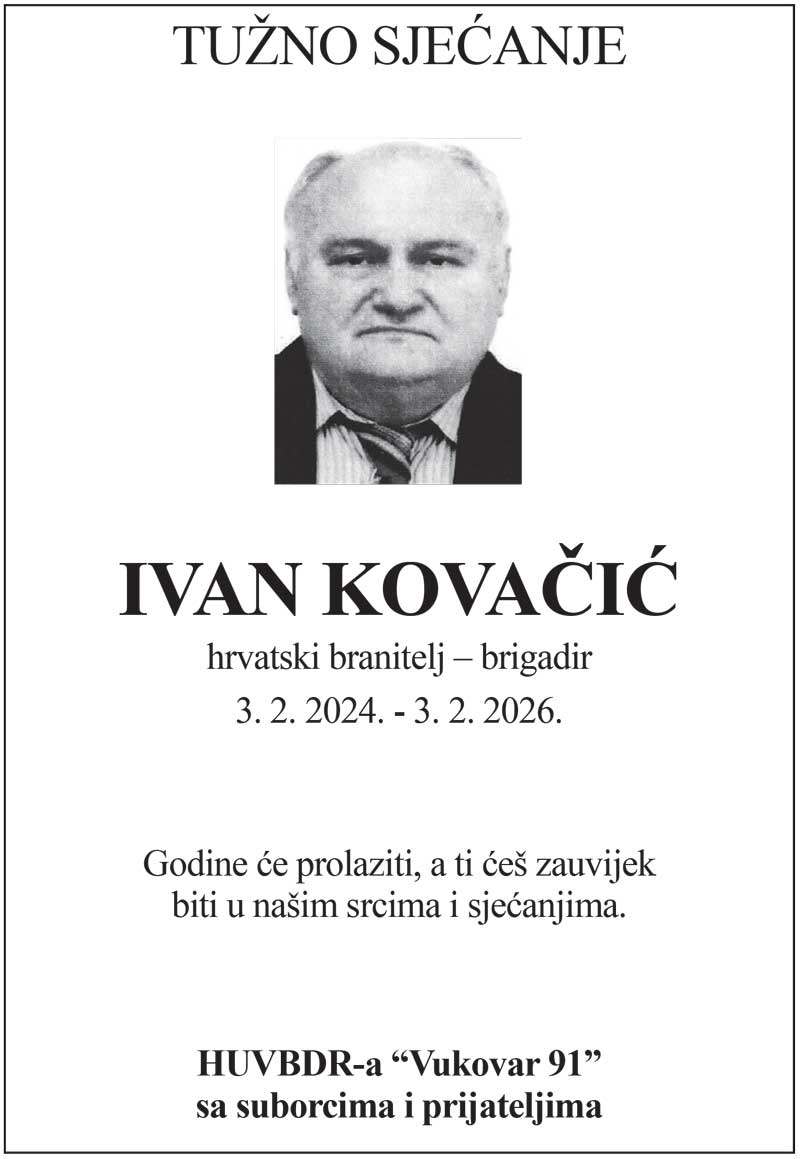 Prije dvije godine napustio nas je prijatelj, suborac Ivan Kovačić, hrvatski branitelj – brigadir, dugogodišnji predsjednik HUVBDR-a “Vukovar 91”.
